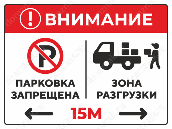 Табличка «Парковка запрещена. Зона разгрузки 15 метров»